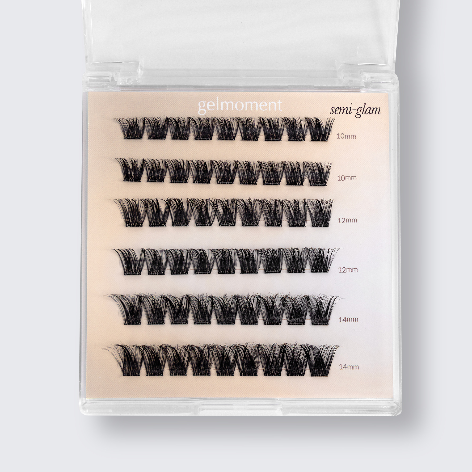 Gelmoment one-step lashes are your easy solution to adding length, volume, and drama to your eyelashes with a hold of 24+ hours. These individual lash clusters come in a variety of lengths and styles, providing you with full control over how dramatic of a look you desire. Plus, our lashes come pre-glued, making the application and removal processes as convenient as possible for beginners and enthusiasts alike.