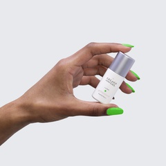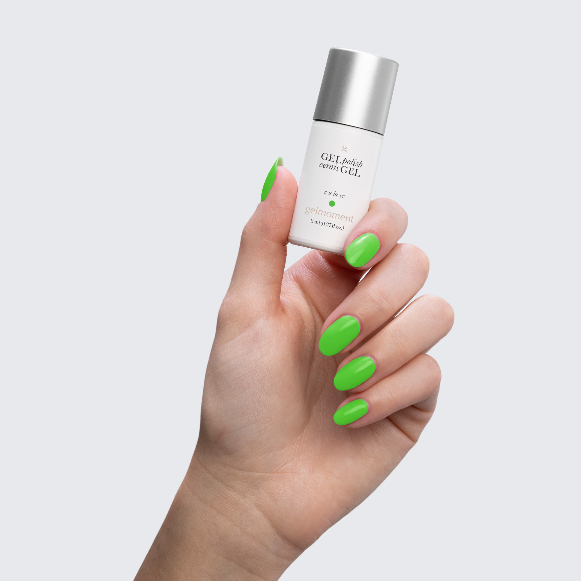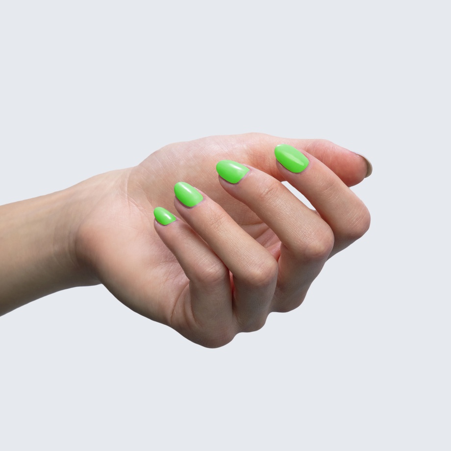 Neon green. Bright. Cool undertone. Medium opacity (slightly translucent).