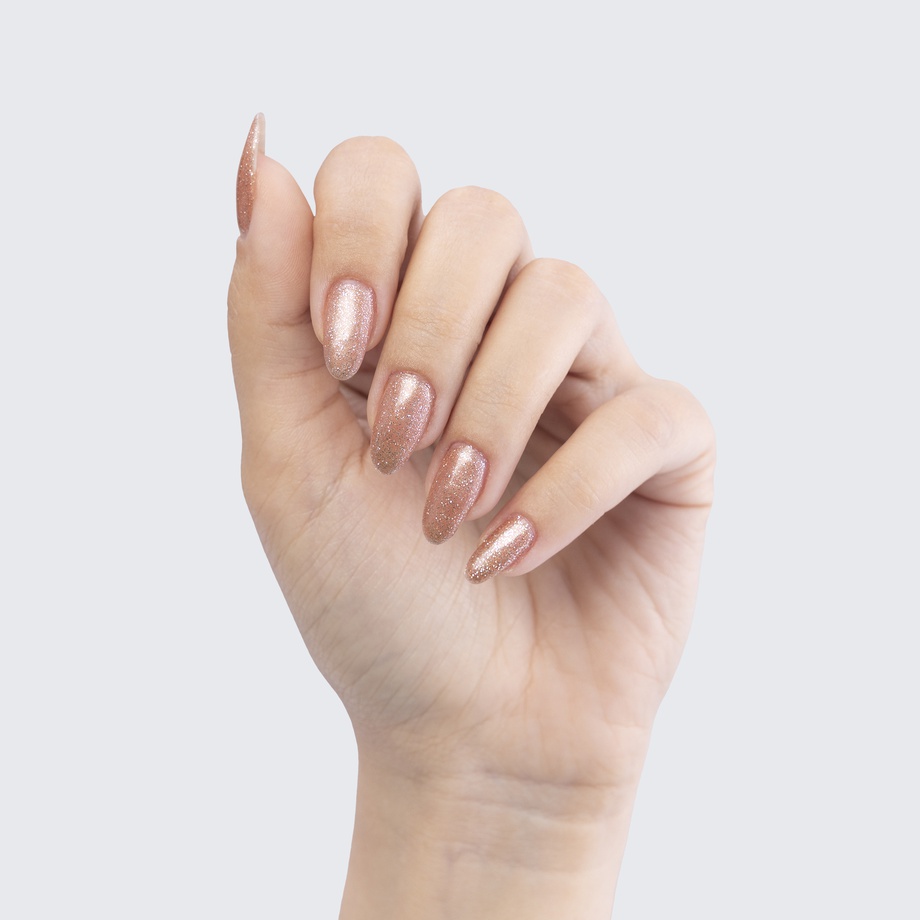 This sparkly rose-gold polish makes for monumental manicures.